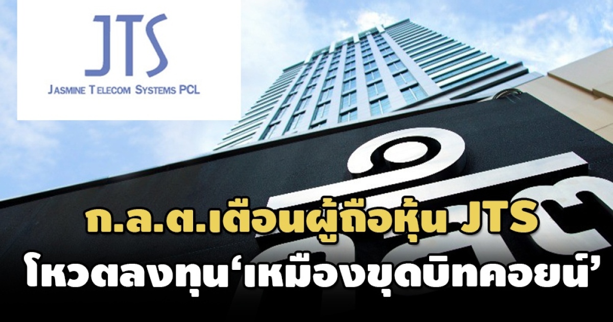 เมื่อวันที่ 11 ก.พ.ที่ผ่านมา ก.ล.ต. ขอให้ผู้ถือหุ้นบริษัท จัสมิน เทคโนโลยี โซลูชั่น จำกัด (มหาชน) (JTS) ศึกษาข้อมูลและไปใช้สิทธิออกเสียงในการประชุมวิสามัญผู้ถือหุ้นวันที่ 22 กุมภาพันธ์ 2565 ผ่านระบบออนไลน์ กรณีบริษัทและ/หรือบริษัทย่อยจะเข้าลงทุนในธุรกิจเหมืองขุดบิทคอยน์เพิ่มเติม โดยที่ปรึกษาทางการเงินอิสระเห็นว่า โครงการลงทุนดังกล่าวมีความเสี่ยงสำคัญที่บริษัทไม่สามารถควบคุมได้ ซึ่งมีผลกระทบต่อผลตอบแทนของผู้ถือหุ้นอย่างมีนัยสำคัญ ผู้ถือหุ้นจึงไม่ควรอนุมัติการลงทุนในครั้งนี้