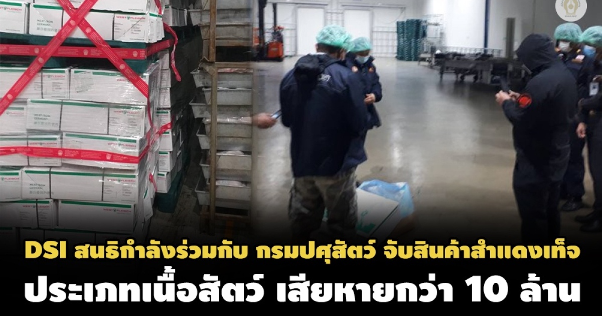 วานนี้ (วันที่ 12 กุมภาพันธ์ 2565) ภายใต้การอำนวยการของ พันตำรวจตรี ยุทธนา แพรดำ รองอธิบดีกรมสอบสวนคดีพิเศษ และนายมเหสักข์ พันธ์สง่า ผู้อำนวยการกองปฏิบัติการคดีพิเศษภาค ได้สั่งการให้ นายวรพจน์ ไม้หอม รองผู้อำนวยการกองปฏิบัติการคดีพิเศษ พร้อมคณะ สนธิกำลังร่วมกับพนักงานเจ้าหน้าที่กองสารวัตรและกักกัน กรมปศุสัตว์ ร่วมบูรณาการเข้าตรวจสอบห้องเย็นแห่งหนึ่งในพื้นที่จังหวัดสมุทรสาคร ซึ่งจากการสืบสวนหาข่าวได้รับข้อมูล ทราบว่ามีการลักลอบนำเข้าเนื้อสัตว์จากต่างประเทศเข้ามาโดยไม่รับอนุญาตโดยสำแดงรายการสินค้าประเภทอื่นอันเป็นเท็จ มีการขนถ่ายโดยรถบรรทุกตู้สินค้าขนาดใหญ่ออกจากท่าเทียบเรือแห่งหนึ่งในพื้นที่ภาคตะวันออก ไปเก็บไว้ที่ห้องเย็นดังกล่าว ผลการตรวจค้น พบกล่องสินค้าต้องสงสัยภายในห้องเย็นหมายเลข 1 สำแดงในใบขนสินค้าเป็น Frozen Product ตรวจสอบแล้วพบว่าเป็นเนื้อสุกรที่ไม่มีเอกสารการนำเข้าจากกรมปศุสัตว์ (ร.7) เอกสารการเคลื่อนย้าย หรือเอกสาร ที่เกี่ยวข้องอื่นมาแสดงต่อพนักงานเจ้าหน้าที่จากกรมปศุสัตว์ ซึ่งมีความผิดตามพระราชบัญญัติโรคระบาดสัตว์ พ.ศ. 2558 จึงได้ทำการอายัดกล่องสินค้าต้องสงสัยไว้ จำนวน 945 กล่อง น้ำหนัก 21,473 กิโลกรัม ประเมินค่าความเสียหายประมาณ 10 ล้านบาท โดยจากการข่าวพบว่ามีกลุ่มเครือข่ายผู้นำเข้าและตัวแทนนำเข้าหลายรายมีความเกี่ยวข้องกับขบวนการดังกล่าว และยังคงมีสินค้าข้างต้นตกค้างอยู่ในพื้นที่ ซึ่งกรมสอบสวนคดีพิเศษ โดยกองปฏิบัติการ คดีพิเศษภาค จะเร่งดำเนินการสืบสวนขยายผลบูรณาการกับหน่วยงานที่เกี่ยวข้องตรวจสอบ ต่อไป