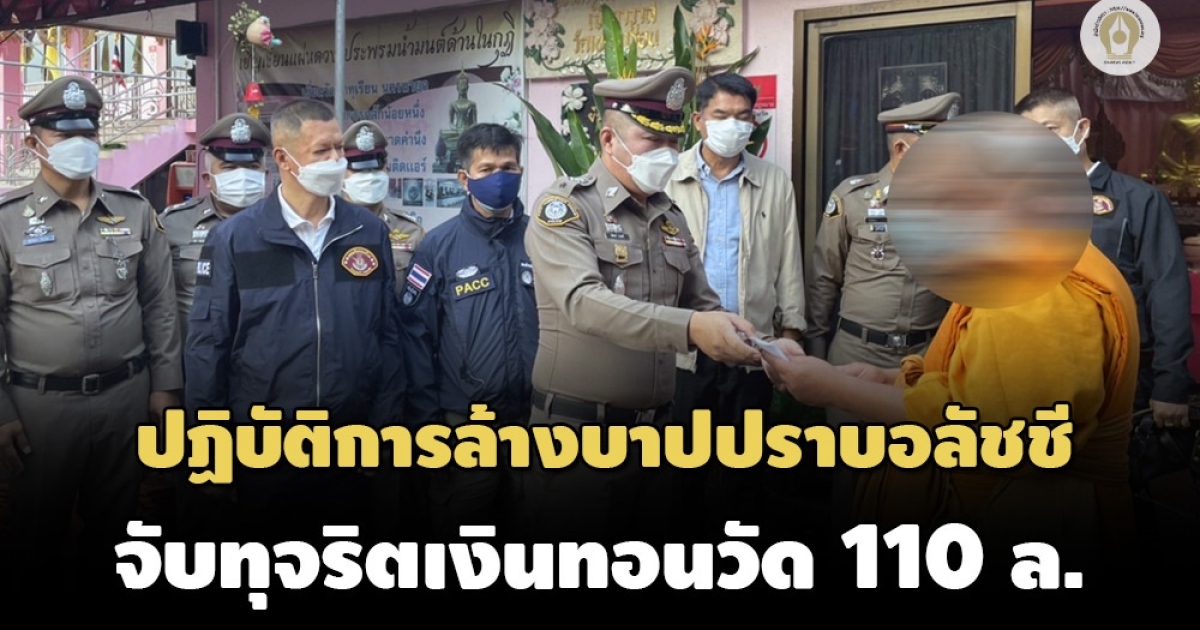 ตำรวจ บก.ปปป. เปิดปฏิบัติการ 'ล้างบาป ปราบอลัชชี ทุจริตเงินทอนวัด เข้าตรวจค้น 5 จุด ในพื้นที่ กทม.-นครนายก-นนทบุรี อายัดทรัพย์รวมมูลค่า 110 ล้านบาท