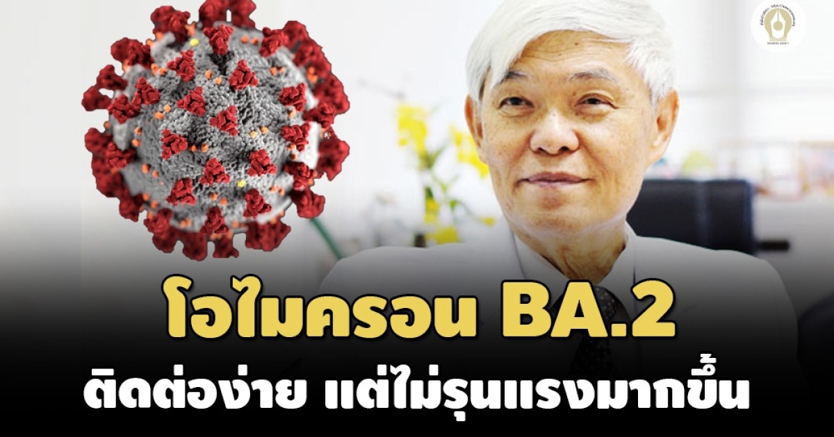 ศ.นพ.ยง ภู่วรวรรณ เผยผลการศึกษาโควิด-19 โอไมครอน สายพันธุ์ BA.2 มีแนวโน้มที่จะพบมากขึ้นในประเทศไทย ติดต่อง่ายขึ้นกว่า BA.1 แต่ไม่ได้มีความรุนแรงเพิ่มขึ้น