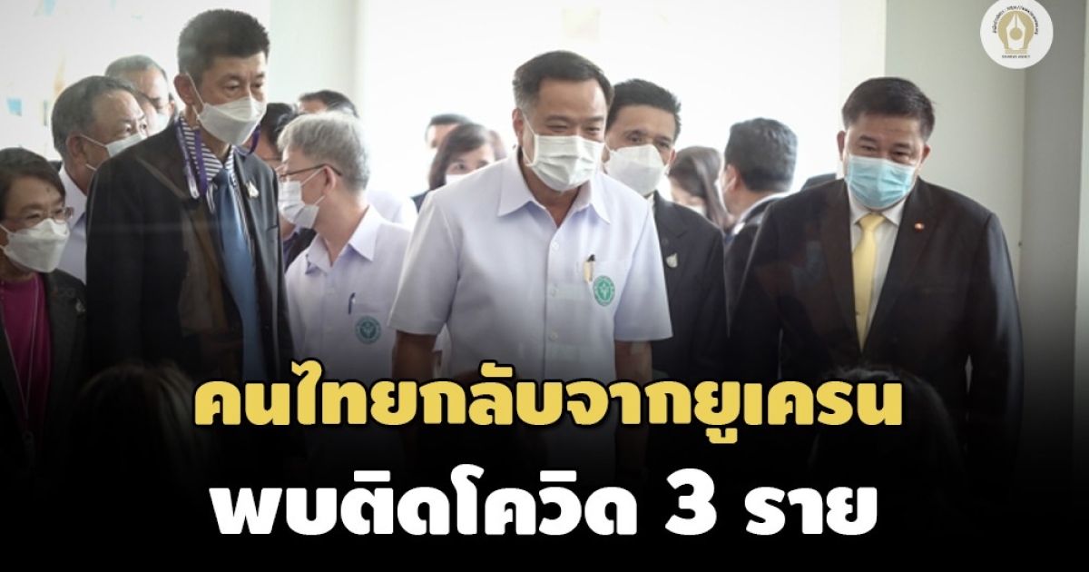 'อนุทิน' เผยแรงงานไทยกลับจากยูเครนแล้วรอบแรก 38 ราย จัด Quarantine Center สถาบันบำราศนราดูร ดูแลกักตัวแบบ 7+3 พร้อมตรวจ RT-PCR เบื้องต้นพบโควิด 3 ราย ส่วนรอบบ่ายจะมาอีก 58 ราย รวม 96 ราย