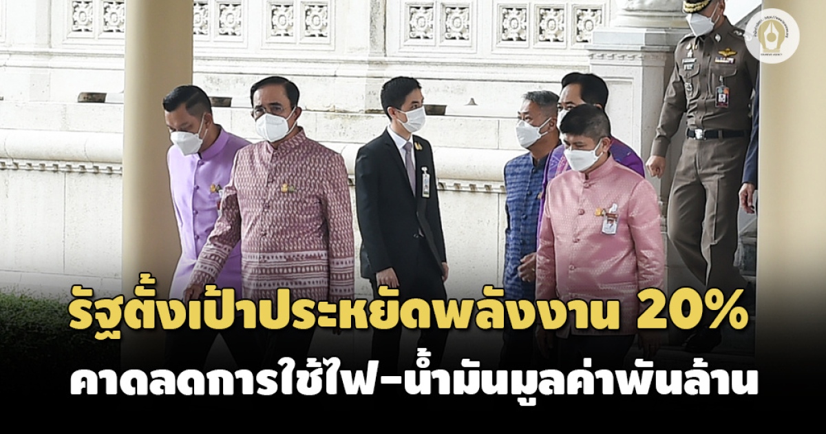 ครม.สั่งทุกส่วนราชการ ตั้งเป้า 6 เดือน ลดการใช้พลังงาน 20% มาตรการทำได้ทันที เช่น ปรับแอร์ รณรงค์การใช้บันได ใช้หลอดไฟ LED เลือกใช้รถยนต์ให้เหมาะสมกับสภาพเดินทาง คาดการใช้ไฟ-น้ำมัน คิดมูลค่าหลายพันล้านบาท