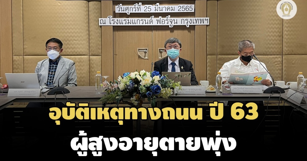 อุบัติเหตุทางถนน ปี 63 คร่าชีวิตคนไทยชั่วโมงละ 2 คน ดันยอดรวม 17,831 ราย แม้ภาพรวมเกิดน้อยลง แต่ความสูญเสียยังอยู่ในระดับสูง ห่วง 'ผู้สูงอายุ' ตายพุ่ง หลังสัดส่วนเขยิบเทียบเท่ากลุ่มเยาวชน-วัยทำงาน