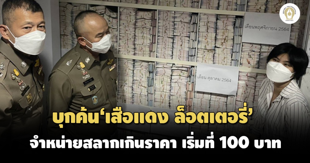 ตำรวจนำกำลังตรวจค้น ‘เสือแดง ล็อตเตอรี่’ แพลตฟอร์มขายสลากออนไลน์ พบเริ่มต้นที่ใบละ 100 บาท ราคาเกินกว่ากฎหมายกำหนด