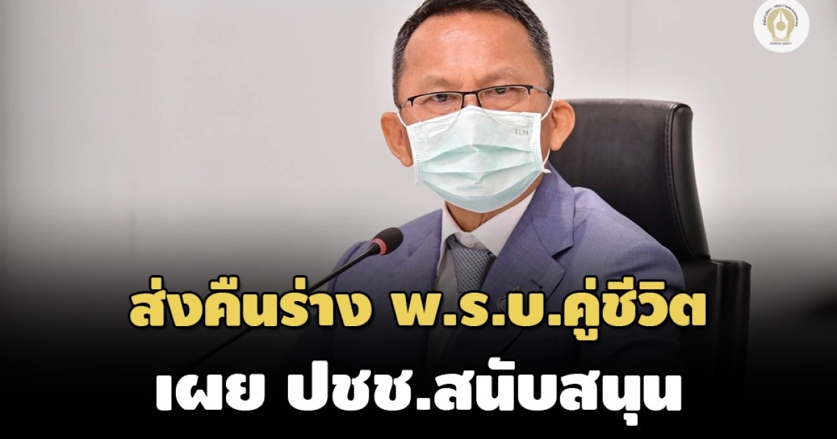กระทรวงยุติธรรมส่งร่าง พ.ร.บ.คู่ชีวิต คืน ครม.หลังรับฟังความเห็น 'สมศักดิ์' เผยประชาชนสนับสนุน พบขัดหลักศาสนาคริสต์-อิสลาม แต่ไม่ขัดข้องถ้าจะผลักดัน เร่งขับเคลื่อนส่งต่อเพื่อขยับไปแก้ปัญหาประชาชนเรื่องอื่นต่อ