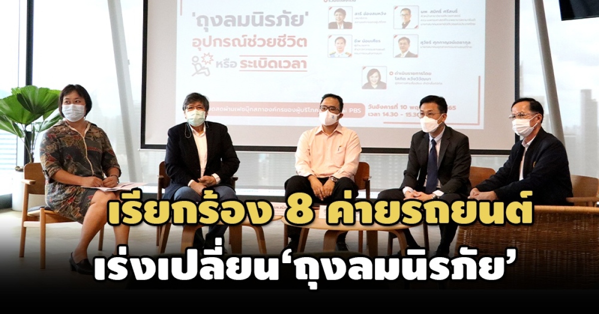 ‘สภาองค์กรของผู้บริโภค’ เรียกร้อง 8 รถยนต์ ที่ติดตั้ง ‘ถุงลมนิรภัย’ ยี่ห้อ ‘ทาคาตะ’ เร่งเปลี่ยน ‘ถุงลมนิรภัย’ ให้ลูกค้า หลังพบมีรถยนต์ 6 แสนคัน ยังได้รับการเปลี่ยนถุงลมนิรภัย