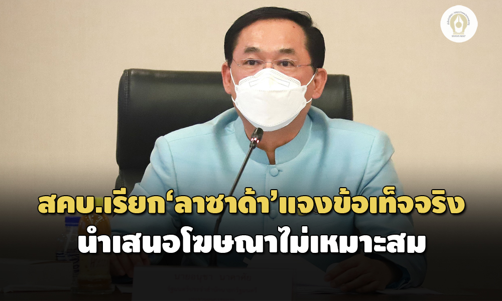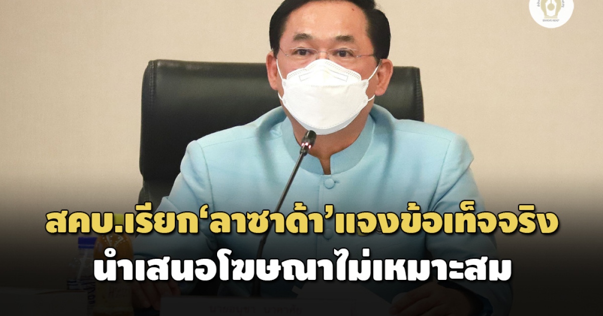 สคบ.ออกหนังสือเรียก 'ลาซาด้า' แจงข้อเท็จจริง ปมนำเสนอโฆษณาไม่เหมาะสม 'อนุชา' ย้ำหากพบผิดจริง ต้องดำเนินการตามกฎหมายอย่างเด็ดขาด