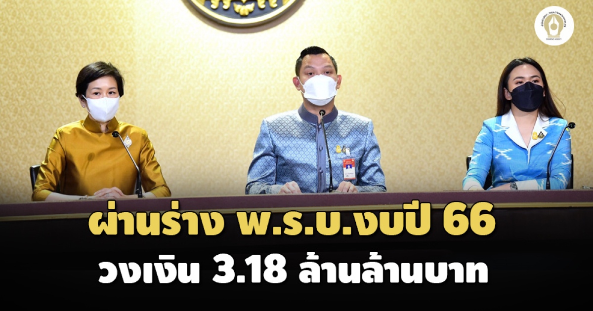 ขณะที่ นายธนกร วังบุญคงชนะ โฆษกประจำสำนักนายกรัฐมนตรี เปิดเผยว่า ร่างพระราชบัญญัติงบประมาณรายจ่ายประจำปีงบประมาณ พ.ศ.2566 วงเงิน 3,185,000 ล้านบาท แบ่งเป็น รายจ่ายงบกลาง 590,470.0 ล้านบาท รายจ่ายของหน่วยรับงบประมาณ 1,090,329.6 ล้านบาท รายจ่ายบูรณาการ 218,477.7 ล้านบาท รายจ่ายบุคลากร 772,119.1 ล้านบาท รายจ่ายสำหรับทุนหมุนเวียน 206,985.6 ล้านบาท และรายจ่ายเพื่อการชำระหนี้ภาครัฐ 306,618.0 ล้านบาท