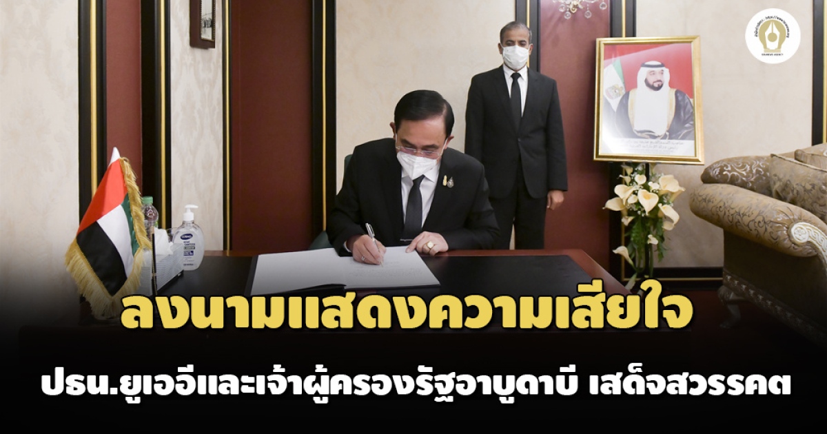 ‘ประยุทธ์’ ลงนามแสดงความเสียใจ ประธานาธิบดีแห่งสหรัฐอาหรับเอมิเรตส์ และเจ้าผู้ครองรัฐอาบูดาบี เสด็จสวรรคต ขอความร่วมมือหน่วยงานรัฐลดธงครึ่งเสา 3 วัน