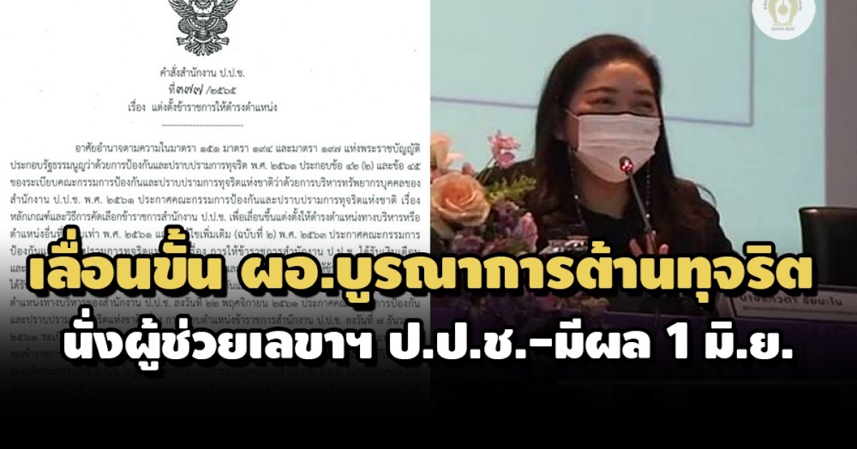 ป.ป.ช.แต่งตั้ง 'แก้วตา ชัยมะโน' ผอ. สำนักส่งเสริมและบูรณาการการมีส่วนร่วมต้านทุจริต นั่งผู้ช่วยเลขา ฯ มีผล 1 มิ.ย. หลัง 'บุญแสง ชีระภากร' ลาออก