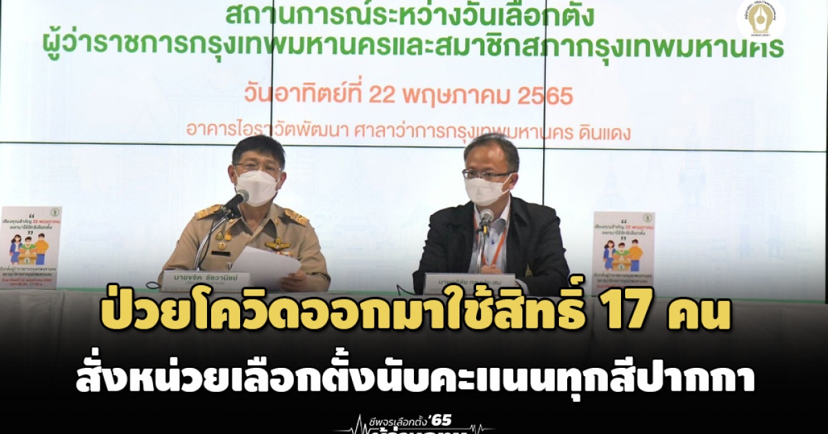 ภาพรวมเลือกตั้งผู้ว่าฯ กทม.- ส.ก. มีผู้ป่วยโควิดออกมาใช้สิทธิ์ 17 ราย คาดรู้ผลไม่เป็นทางการ 3 ทุ่ม ปลัด กทม.ย้ำทุกหน่วยเลือกตั้งนับคะแนนทุกสีปากกา