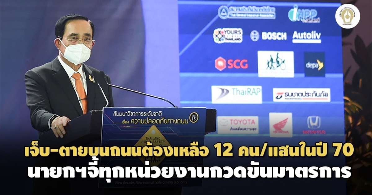 นายกฯ ร่วมงานสัมมนาปลอดภัยทางถนน ประกาศเป้าปี 70 ยอดเจ็บ-ตายบนท้องถนนต้องเหลือ 12 คน/ประชากร 100,000 คน ก่อนจี้หน่วยงานที่เกี่ยวข้องสร้างการรับรู้-สภาพแวดล้อมที่เอื้อต่อความปลอดภัย