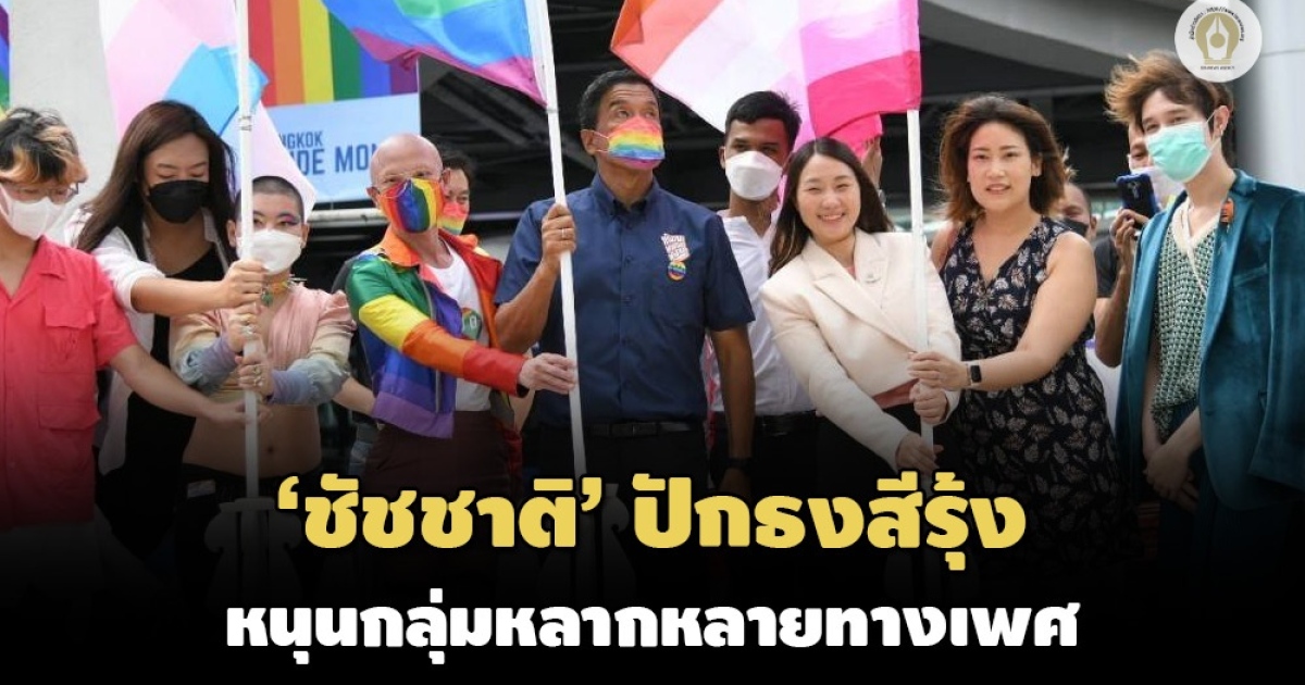 'ชัชชาติ' ปักธงสีรุ้ง งาน Pride Month 2022 ร่วมแสดงเจตนารมณ์ส่งเสริมความเท่าเทียมทางสังคม-ความหลากหลายทางเพศ ยืนยัน เจ้าหน้าที่ กทม. จะดูแลทุกคนอย่างเท่าเทียมกันตามหลักของประชาธิปไตย โดยไม่เลือกปฏิบัติ