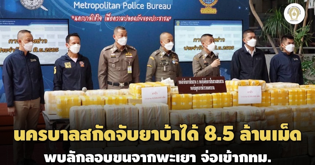 นครบาล สกัดจับยาบ้า 8.5 ล้านเม็ด หลังจับตัวผู้ต้องหารายใหญ่ที่นครสวรรค์ 3 ราย พบเส้นทางลำเลียงจากชายแดนจ.พะเยา - พิษณุโลก ก่อนสกัดจับได้ที่สระบุรี หวั่นทะลักเข้ากรุงฯ