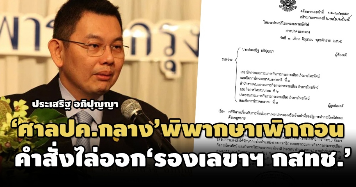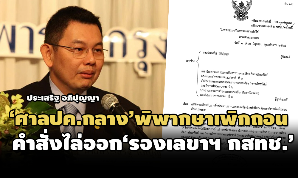 ‘ศาลปกครองกลาง’ พิพากษาเพิกถอนคำสั่ง ‘สำนักงาน กสทช.’ ที่ลงโทษไล่ออก ‘ประเสริฐ อภิปุญญา’ จากตำแหน่ง ‘รองเลขาฯ กทสช.’ กรณีจ่ายเงินโบนัสพนักงาน 8.7 หมื่นบาท เหตุเป็นการทำตามคำสั่งผู้บังคับบัญชา-ไม่ปกปิดข้อเท็จจริง