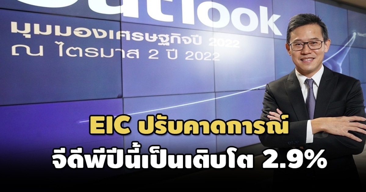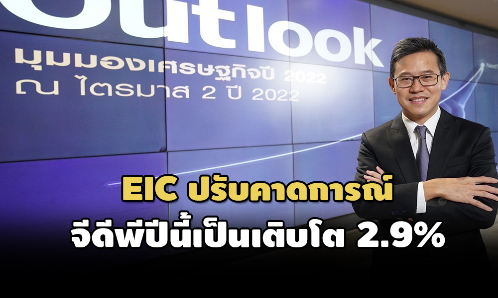 EIC ปรับประมาณการเศรษฐกิจไทยปีนี้เป็นเติบโต 2.9% จากเดิม 2.7% ตามการฟื้นตัวของภาคการท่องเที่ยว มองเงินเฟ้อเฉลี่ยทั้งปีอยู่ที่ 5.9% สูงสุดในรอบ 2 ปี คาด ‘กนง.’ ขึ้นดอกเบี้ยนโยบายเป็น 0.75% ต่อปี ในช่วงไตรมาส 3