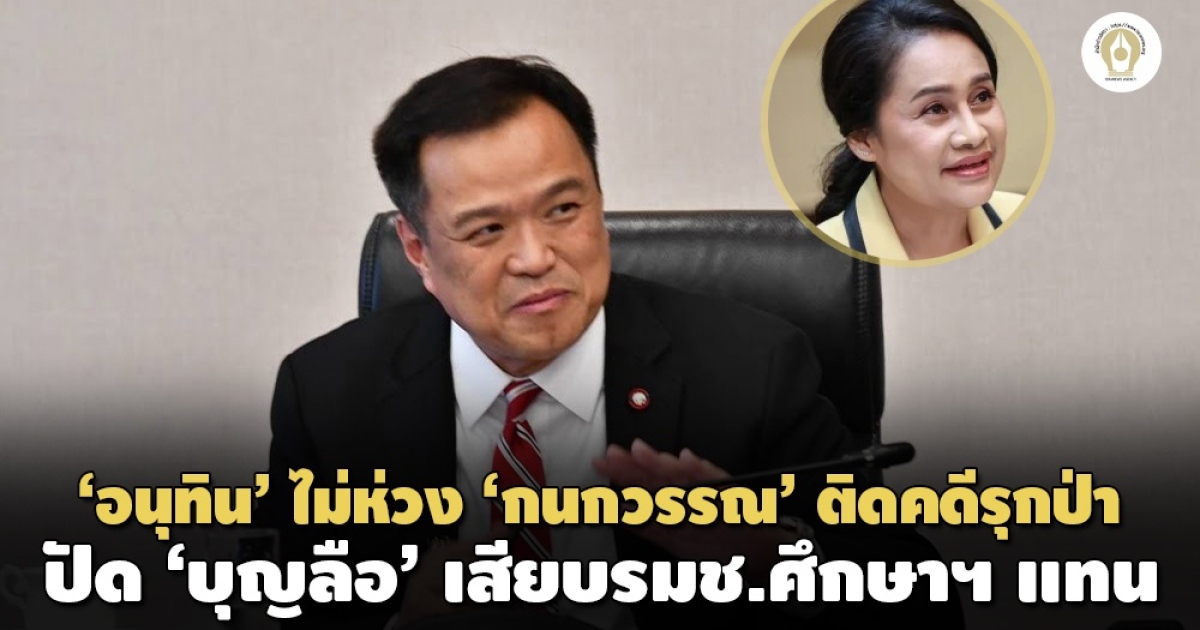 ‘อนุทิน’ ไม่ห่วง ‘กนกวรรณ’ พันคดีรุกป่า เชื่อเป็นความรับผิดชอบของเจ้าตัว ขอรอคำสั่งศาล ผิดจริงฟันเองไม่ต้องมีใบเสร็จ ปัดเตรียมให้ ‘บุญลือ ประเสริฐโสภา’ เสียบแทน ส่วน ป.ป.ช. เตรียมฟัน ‘ศุภชัย โพธิ์สุ’ ให้เป็นไปตามกฎหมาย