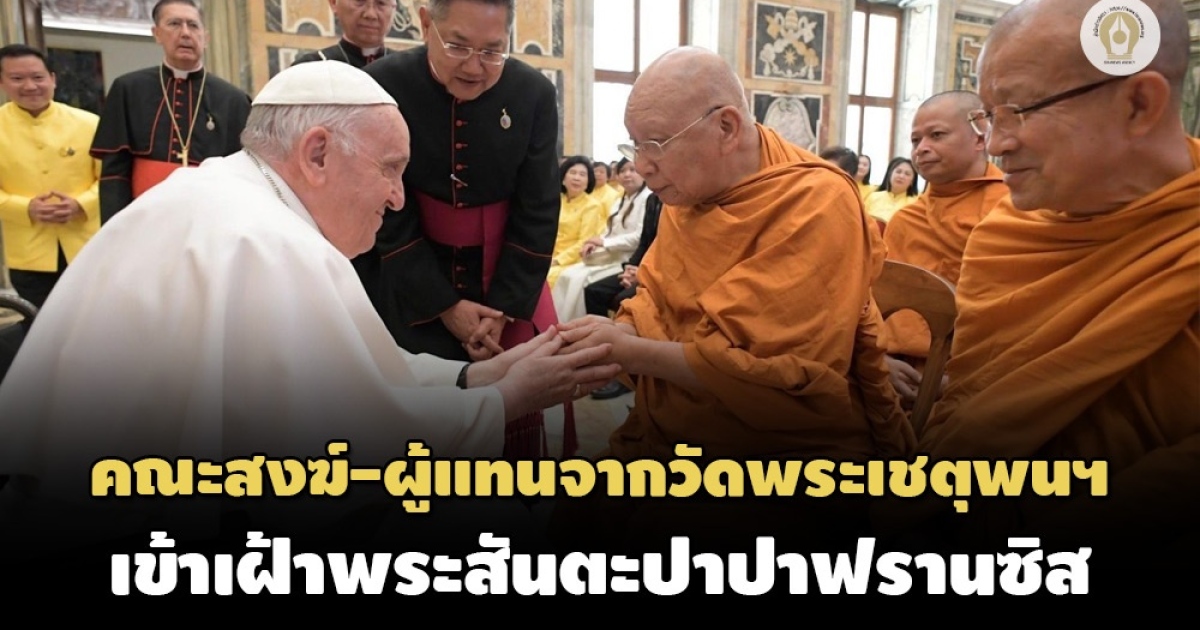 ผู้สื่อข่าวรายงานว่า เมื่อวันที่ 18 มิ.ย. 2565 สมเด็จพระสันตะปาปาฟรังซิส ได้ประทานเมตตาให้การต้อนรับคณะสงฆ์ และคณะผู้แทนจากวัดพระเชตุพน วิมลมังคลาราม ราชวรมหาวิหาร ที่นำโดยท่านเจ้าประคุณสมเด็จพระมหาธีราจารย์ เจ้าอาวาสวัดพระเชตุพนวิมลมังคลาราม ราชวรมหาวิหาร พร้อมด้วยพระเทพวัชราจารย์ ผู้ช่วยเจ้าอาวาส พระราชรัตนสุนทร ผู้ช่วยเจ้าอาวาส พร้อมด้วยคณะสงฆ์ และนายฐาปน สิริวัฒนภักดี ไวยาวัจกรวัดพระเชตุพนฯ และกรรมการมูลนิธิสิริวัฒนภักดี ร่วมด้วย คณะจากวัดมังกรกมลาวาส เล่งเนยยี่ นำโดยหลวงจีนธรรมรัตจีนประจักษ์ (เย็นงี้) เจ้าอาวาสวัดมังกรกมลาวาส (เล่งเนยยี่) และยังร่วมด้วยคณะสงฆ์จากวัดอีกหลายแห่งที่เดินทางมาจากประเทศไทย เป็นพระภิกษุ 40 รูป และฆราวาสจำนวน 65 ท่าน รวม 105 ท่าน