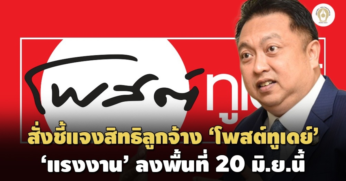 ผู้สื่อข่าวรายงานว่า วันที่ 19 มิถุนายน 2565 นายสุชาติ ชมกลิ่น รัฐมนตรีว่าการกระทรวงแรงงาน เปิดเผยว่า กรณีสื่อออนไลน์ ‘โพสต์ทูเดย์’ ซึ่งเป็นสื่อในเครือของบริษัท บางกอกโพสต์ จำกัด (มหาชน) ประกาศเลิกจ้างพนักงาน และกำลังจะปิดตัวลง ได้สั่งการให้กรมสวัสดิการและคุ้มครองแรงงาน (กสร.) กระทรวงแรงงาน ส่งพนักงานตรวจแรงงานเข้าตรวจสอบหาข้อเท็จจริงในทันที