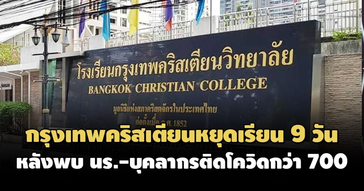 กรุงเทพคริสเตียนออกประกาศหยุดเรียนการสอน 9 วันให้เรียนออนไลน์แทน 11-12,18-19 ก.ค. หลังพบนักเรียน-บุคลากรติดเชื้อแล้วมากกว่า 700 ราย วอน ผปค.ทบทวนเดินทางช่วงวันหยุดยาว