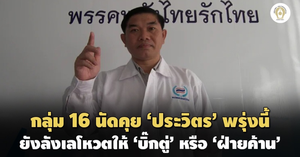 กลุ่ม 16 ยันพรุ่งนี้ (17 ก.ค. 65) เข้าพบ ‘ประวิตร’ หารือท่าทีทางการเมือง ก่อนกำหนดท่าทีทางการเมืองต่อไป ยังไม่ชัวร์พบ ‘ธรรมนัส’ วันจันทร์นี้ (18 ก.ค. 65) ก่อนบอกยังไม่ตัดสินใจโหวตไว้วางใจใคร