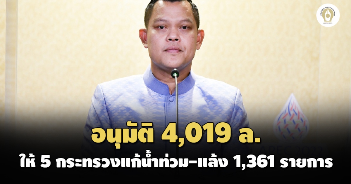 ครม.อนุมัติ 4,019 ล้านบาทให้ 5 กระทรวงแก้น้ำท่วม-น้ำแล้งประจำปี 65 รวม 1,361 รายการ