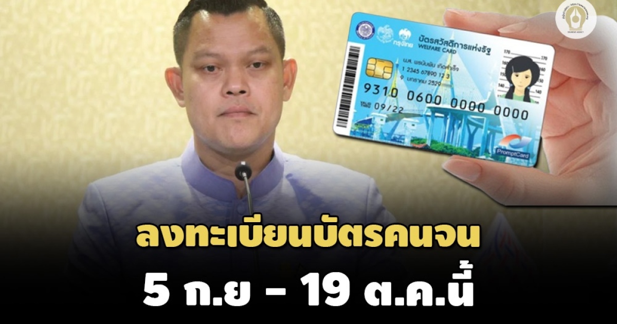 โฆษกรัฐบาลเผยกระทรวงการคลังเคาะวันลงทะเบียนบัตรคนจนรอบใหม่แล้ว ตามข้อสั่งการนายกฯ เริ่ม 5 ก.ย.- 19 ต.ค. 65 คาดมีผู้ลงทะเบียนเพิ่มขึ้นเป็น 15-16 ล้านคน