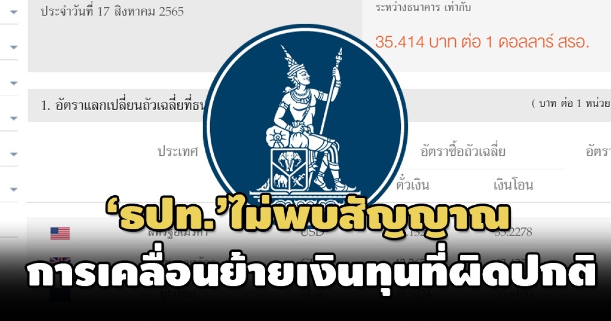 “โดยรวมไม่ปรากฏสัญญาณการเคลื่อนย้ายเงินทุนที่ผิดปกติ” นางจันทวรรณ ระบุ