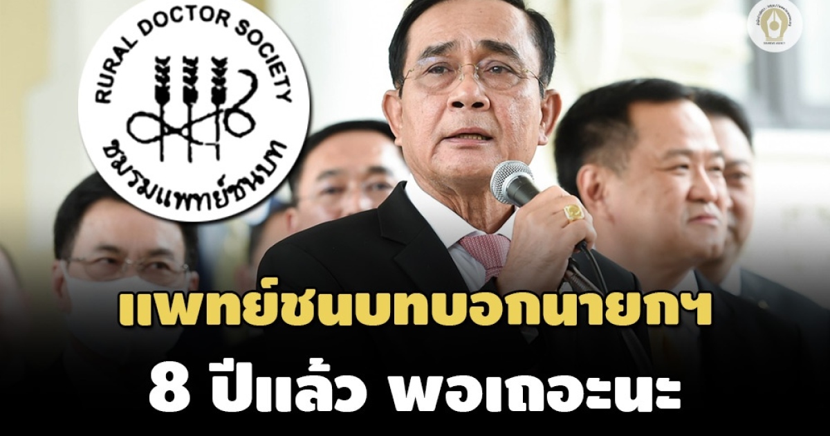 'ชมรมแพทย์ชนบท' ออกแถลงการณ์ '8 ปีแล้ว พอเถอะนะ' เรียกร้อง 'ประยุทธ์' ลงจากเก้าอี้นายกรัฐมนตรี หลังวาระ เพื่อเปิดทางให้ประชาธิปไตยได้เติบโต