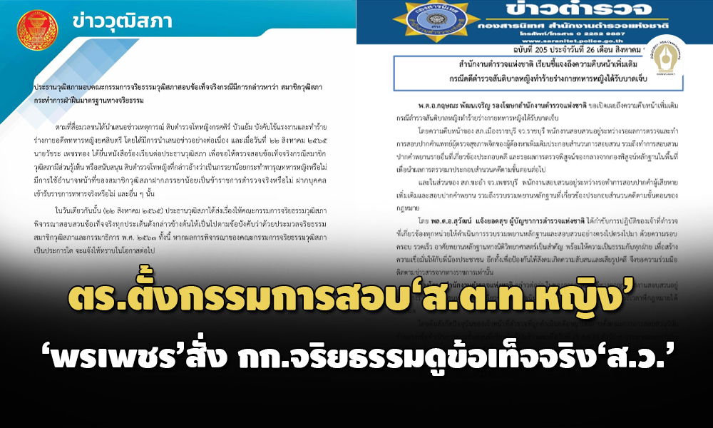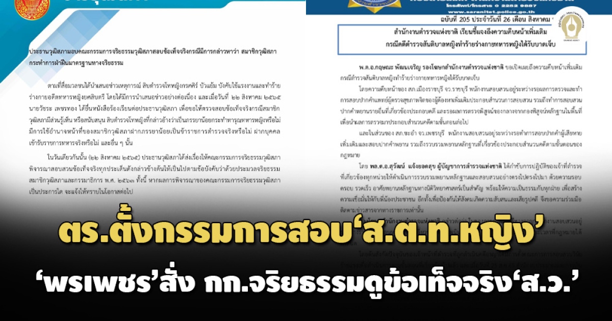 ตร.ตั้งกรรมการ 2 ชุดสอบสวนวินัยร้ายแรง - ตรวจสอบการเข้ารับราชการ 'ส.ต.ท.หญิง' ด้าน 'พรเพชร' ชง กก.จริยธรรมสอบ 'ส.ว.' ถูกอ้างมีส่วนเกี่ยวข้อง