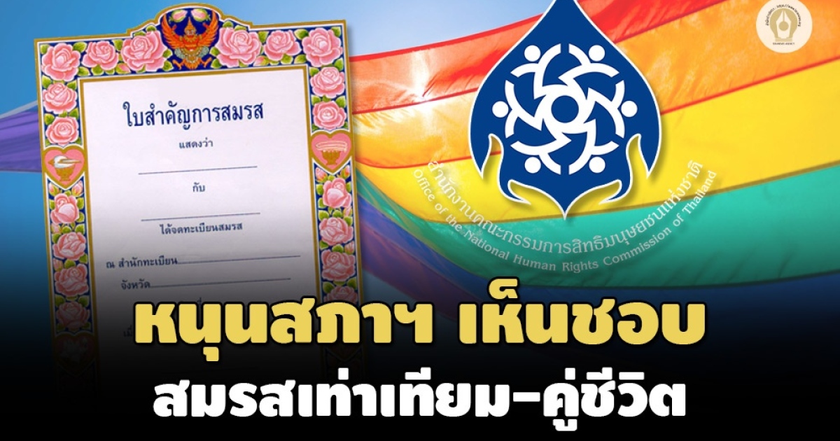 กสม.หนุนสภาฯ ให้ความเห็นชอบร่างกฎหมายสมรสเท่าเทียม-กฎหมายรับรองคู่ชีวิต โดยยึดหลักการความเสมอภาค เท่าเทียม ไม่เลือกปฏิบัติ