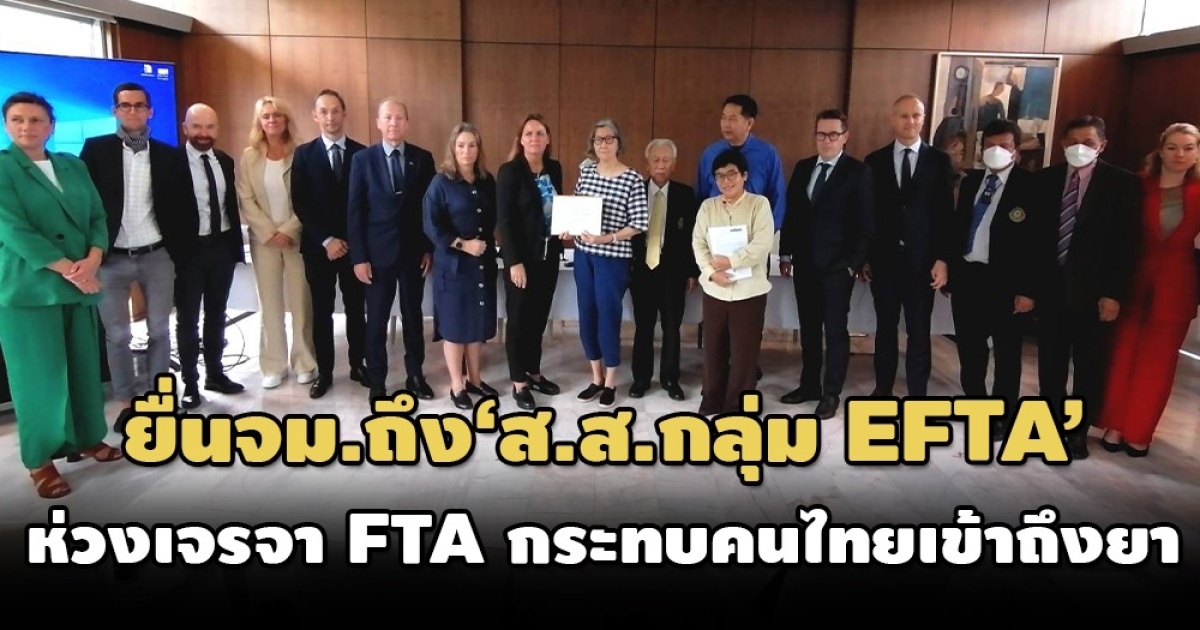 13 เครือข่ายภาคประชาชน ยื่นจดหมายต่อ ส.ส.กลุ่มประเทศ EFTA ห่วงการเจรจา FTA ไทย-สมาคมการค้าเสรียุโรป กระทบการเข้าถึงยาของคนไทย