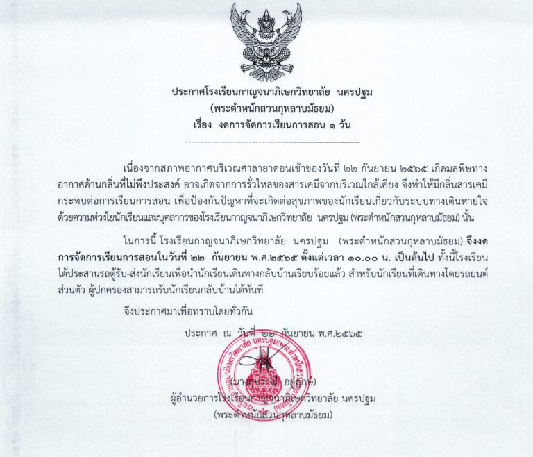 และขอให้บุคลากรและนักศึกษาติดตามประกาศจากศูนย์บริหารความปลอดภัย อาชีวอนามัย และสภาพแวดล้อมในการทำงาน มหาวิทยาลัยมหิดล จึงขอประกาศให้บุคลากรและนักศึกษา ส่วนงานภายใน วิทยาเขตศาลายา