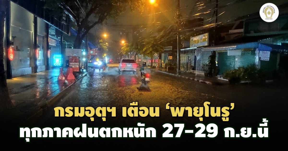 กรมอุตุฯ ออกประกาศเตือน พายุโนรูเข้าเวียดนามกระทบไทย ทำฝนตกหนักทุกภาคเว้นใต้ 27-29 ก.ย.นี้