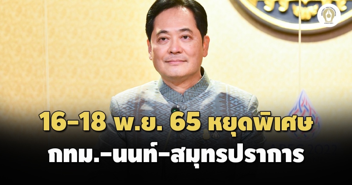 ครม.เคาะ 16-18 พ.ย. 65 หยุดพิเศษเฉพาะ กทม.-นนท์-สมุทรปราการ เนื่องในโอกาสประชุมเอเปกระหว่างวันที่ 14-19 พ.ย.นี้