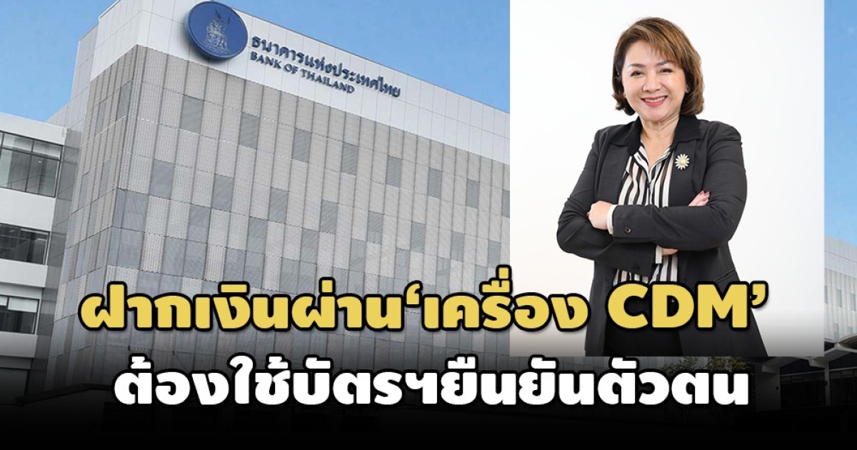 ‘ธปท.’ แจงปรับขั้นตอนการฝากเงินผ่าน ‘เครื่อง CDM’ ต้องยืนยันตัวตนผ่าน ‘บัตรเดบิต-บัตรเอทีเอ็ม-บัตรเครดิต’ เพื่อป้องกันการฟอกเงิน-เพิ่มความปลอดภัยการทำธุรกรรมทางการเงิน