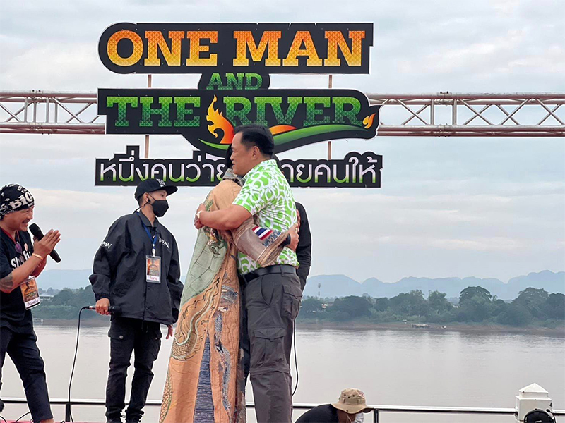 โดยหลังจากว่ายกลับขึ้นฝั่งได้สำเร็จ โตโน่เดินไปไหว้องค์พญาศรีสัตตนาคราช ก่อนจะขึ้นเวทีเปิดใจถึงความรู้สึกว่า อยากขอบคุณคนไทยทุกคนครับ ขอบคุณคนลาวทุกคน วันนี้ไม่ใช่ผมที่ทำสำเร็จ พวกเราทำสำเร็จครับ ไม่ว่าจะเป็นคนไทย คนลาว เห็นไหมครับว่านครพนม ท่าแขก น่ามาเที่ยวเหลือเกิน (ยิ้ม) ประเทศไทยสวยงามเหลือเกินครับ