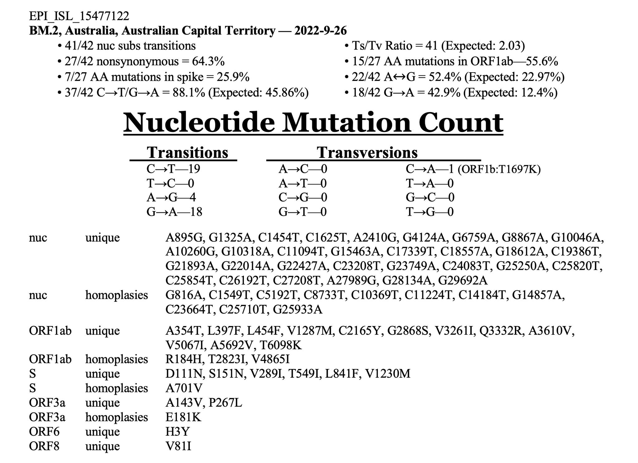 ส่วนการเปลี่ยนแปลงอื่นๆนอกจากนี้คือ transversions หมด ซึ่งคงไม่อธิบายในรายละเอียดความแตกต่าง แต่อยากชี้ประเด็นสำคัญว่า การทำงานของ MV คือ การก่อการกลายพันธุ์ในรูปแบบของ transitions ในสารพันธุกรรมของไวรัสเป็นส่วนใหญ่ โดยไม่ก่อให้เกิดการเปลี่ยนแปลงแบบ transitions แตกต่างจากที่พบในธรรมชาติ .... ดังนั้นการที่พบไวรัสที่มีการกลายพันธุ์แบบเกิด transitions เยอะๆกว่าปกติ 41 ใน 42 ตำแหน่งที่เกิดใหม่เป็น transitions จึงทำให้คนมองว่าไม่ปกติ