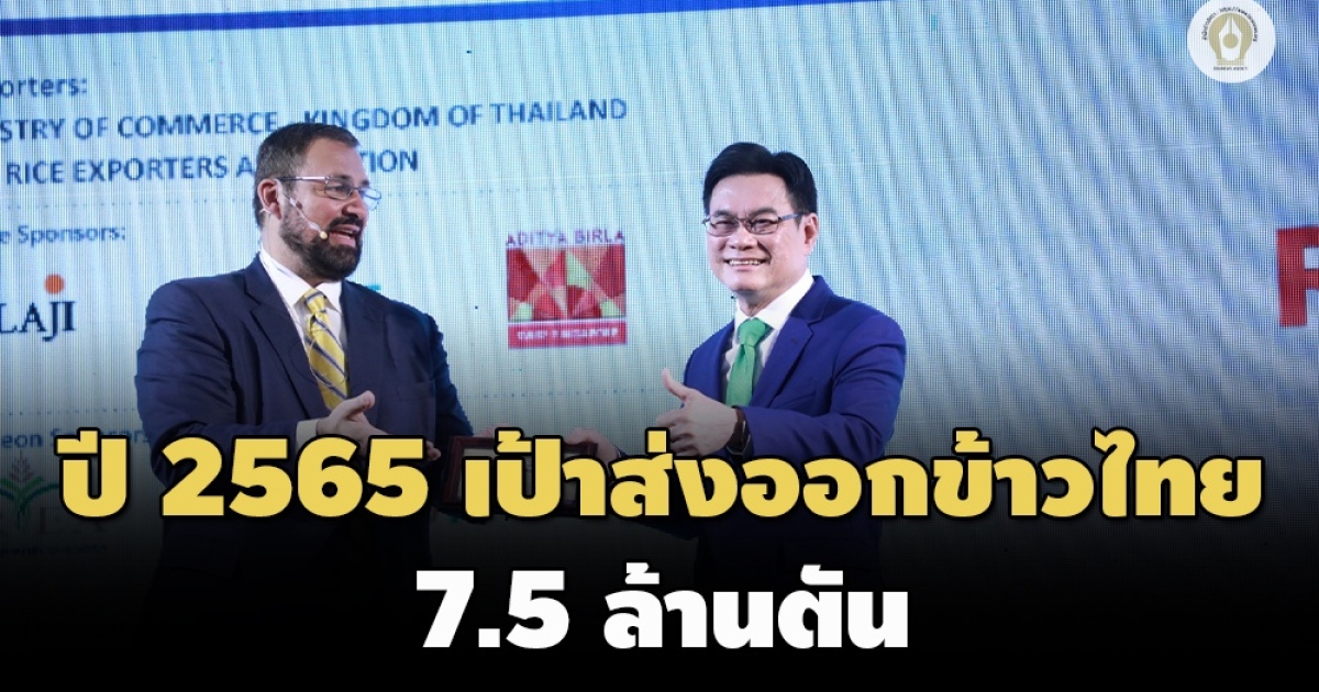 ไทยส่งออกข้าวอันดับ 4 ของโลก หวังปี 65 ส่งออก 7.5 ล้านตัน