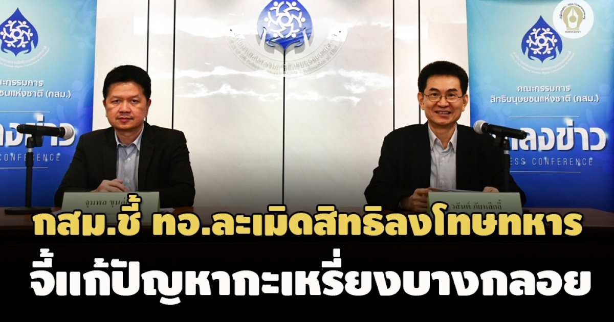 กสม. ชี้กรณีกองบิน 56 จังหวัดสงขลา ลงโทษทหารที่มีอาการทางจิตเวช ข้อหาหนีราชการด้วยวิธีการเช่นเดียวกับบุคคลทั่วไป เป็นการละเมิดสิทธิฯ- แนะหน่วยงานเกี่ยวข้องเร่งแก้ปัญหากลุ่มชาติพันธุ์กะเหรี่ยงบ้านบางกลอยให้เข้าถึงที่ทำกินและสั่งไม่ฟ้องชาวบ้านข้อหาบุกรุก เหตุอาศัยทำกินมาก่อนประกาศเขตอุทยาน
