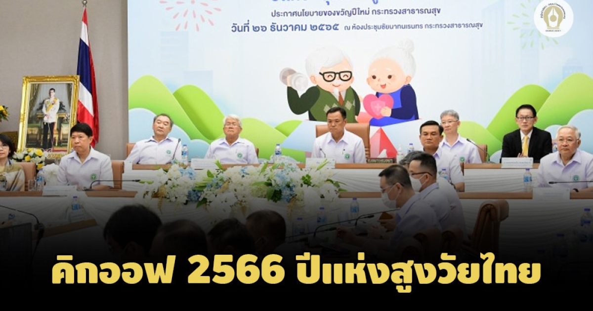 สธ.คิกออฟ 2566 ปีแห่งสุขภาพสูงวัยไทย ชูพลังคนแก่เพื่อพลังสังคม จัดบริการดูแลสุขภาพเป็นของขวัญปีใหม่ ทั้งคัดกรองสุขภาพ มอบวัสดุอุปกรณ์จำเป็น คือ แว่นสายตา 5 แสนชิ้น ผ้าอ้อมผู้ใหญ่ 5 ล้านชิ้น ฟันเทียมและรากฟันเทียม 36,000 ราย