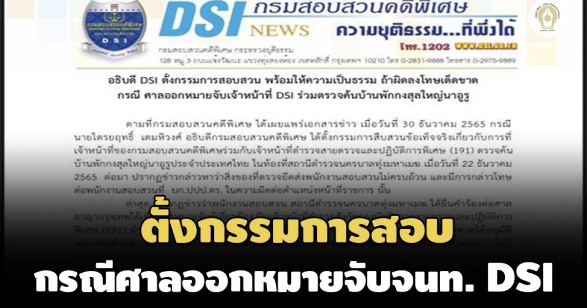 อธิบดีกรมสอบสวนคดีพิเศษตั้งกรรมการสอบสวน กรณีศาลออกหมายจับเจ้าหน้าที่ DSI ร่วมตรวจค้นบ้านพักกงสุลใหญ่นาอูรู พร้อมให้ความเป็นธรรมทุกฝ่าย