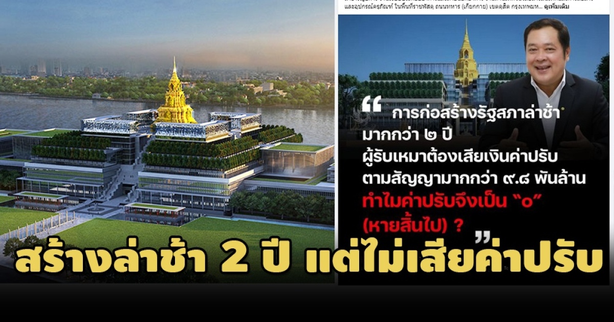 “การก่อสร้างรัฐสภาล่าช้ามากกว่า 2 ปี ผู้รับเหมาต้องเสียเงินค่าปรับตามสัญญามากกว่า 9.8 พันล้านบาท ทำไมค่าปรับจึงเป็น “0” (หายสิ้นไป) ?