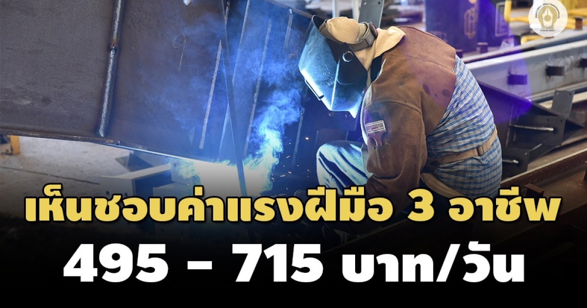 ครม.เห็นชอบอัตราค่าแรงมีฝีมือ 3 กุ่มอาชีพ ‘อุตสาหการ - เครื่องกล - บริการ’ เริ่มต้น 495 บ. สูงสุด 715 บ./วัน