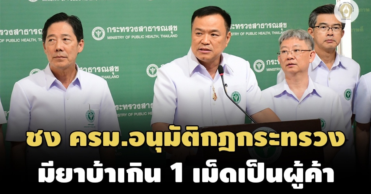 อนุทินพร้อมผู้บริหารกระทรวงสาธารณสุข เผย คณะกรรมการบำบัดรักษาและฟื้นฟูผู้ติดยาเสพติด เห็นชอบร่างกฎกระทรวงให้ผู้มียาบ้าในครอบครองเกิน 1 เม็ดเป็นผู้ค้าแล้ว จ่อชง ครม.อนุมัติในลำดับถัดไป