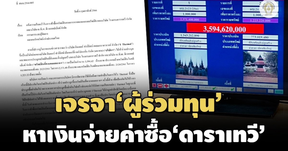 ตามที่ปรากฏในรายงานข่าวสาธารณะว่า บริษัท อินเตอร์ ฟาร์อีสท์ เทอมอล พาวเวอร์ จำกัด (I Thermal) ซึ่งเป็นบริษัทย่อยของบริษัท อินเตอร์ ฟาร์อีสท์ เอ็นเนอร์ยี่ คอร์ปอเรชั่น จำกัด (มหาชน) ได้เข้าร่วมประมูล และชนะการประมูลทรัพย์สินที่ดินและสิ่งปลูกสร้างของบริษัท โรงแรมดาราเทวี จำกัด และบริษัท เอ.พี.เค. ดีเวลลอปเม้นท์ จำกัด (ทรัพย์สินที่ขายทอดตลาดฯ) รวมเป็นเงินจำนวน 3,594.62 ล้านบาท