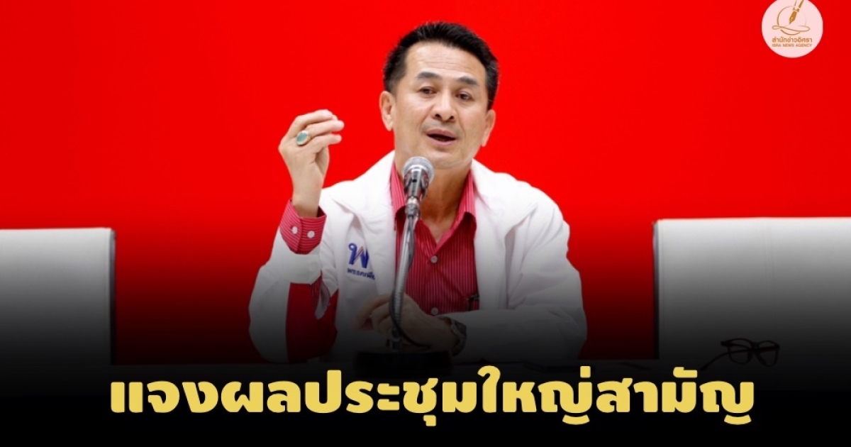 หัวหน้าพรรคเพื่อไทย แจงผลประชุมใหญ่สามัญ ปี 66 ต้องปรับข้อบังคับตามกฎหมายใหม่ ตั้ง 'ทพญ.ศรีญาดา' นั่งรักษาการเหรัญญิก - 'ลิณธิภรณ์' เป็นรักษาการโฆษก แย้มหากยุบสภาประกาศแคนดิเดตนายกไม่เกิน 22 มี.ค
