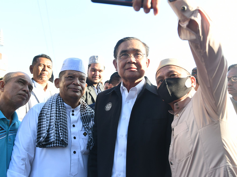 จากนั้น นายกรัฐมนตรีได้เดินพบปะทักทายให้กำลังใจชาวไทยมุสลิมอย่างเป็นกันเอง สร้างความประทับใจให้พี่น้องชาวมุสลิมเป็นอย่างมาก ตลอดเส้นทางมีประชาชนมาขอเซลฟี่ และให้กำลังใจ บอกให้เป็นนายกรัฐมนตรีต่อไปอีกนาน ๆ
