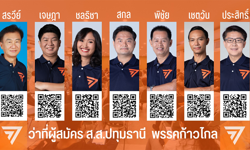 สำหรับรายชื่อว่าที่ผู้สมัคร ส.ส.ปทุมธานี พรรคก้าวไกล ทั้ง 7 เขต ประกอบด้วย