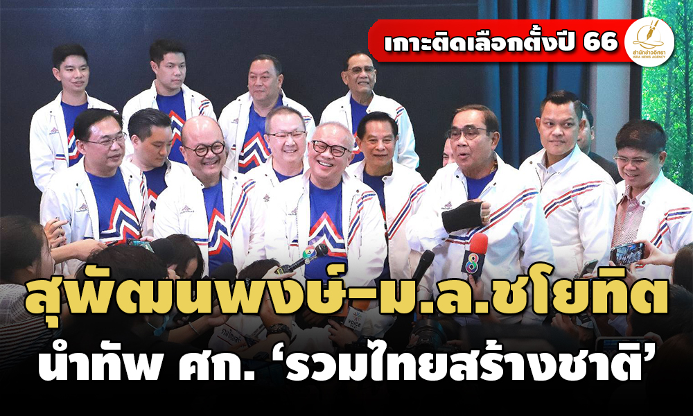 พรรครวมไทยสร้างชาติ เปิดตัวทีมเศรษฐกิจพรรค ‘สุพัฒนพงษ์-ม.ล.ชโยทิต’ นำทีม ก่อน ‘ประยุทธ์’ ชี้งานเศรษฐกิจทำมาหมดแล้ว แต่ต้องทำต่อ ล่นประเทศไม่ใช่สถานประกอบธุรกิจ ก่อนตอบปมการเมืองไม่หวั่นไหวภาพกินข้าว ‘อนุทิน-บิ๊กป้อม’ หลุดถี่ ปัดตอบปมดีลตั้งรัฐบาล ขอให้รอหลังเลือกตั้ง